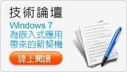Windows Embedded Standard 7 功能強大並具備創新特色,可更輕易的將觸控功能整合至各種嵌入式應用,節省研發人員的時間與資源,適用於互動式多媒體資訊站、醫療照護、智慧交通、軍事等嵌入式開發。