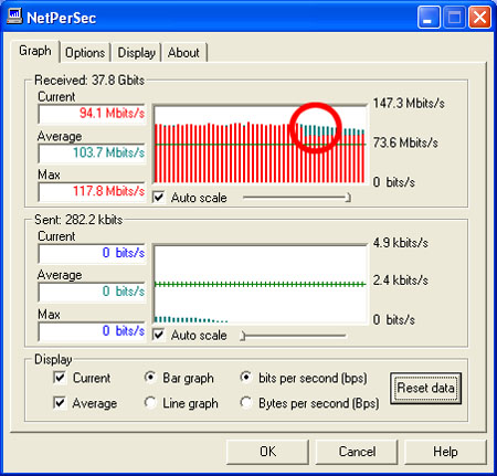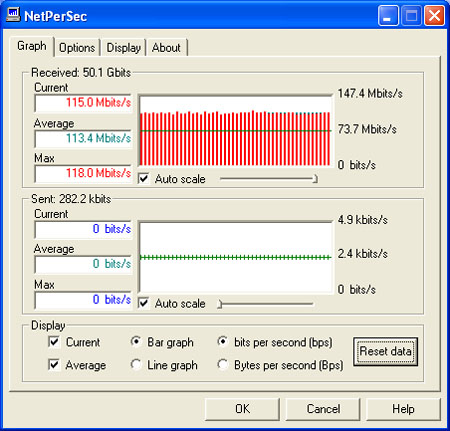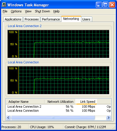 Figure 4: Port trunking allows the receiver to receive total packets (115 Mbps) from the transmitter