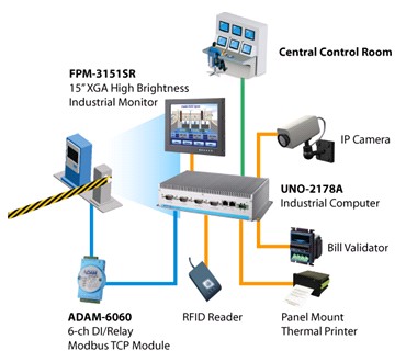 每个停车设备收费机都有研华工业等级嵌入式电脑和一个高亮显示器。客户可通过触摸屏现则不同选项功能,系统将数据传递给相关控制器,进行数据分析并作反馈。
