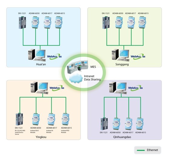 客户在详细的评估之后,采用研华WebAccess作为多个工厂和跨系统应用的集成平台。WebAccess是一款完全基于浏览器的HMI/SCADA软件,配置简便、用户不需要开发新的驱动连接PLC,能连接到各种PLCs或设备。一般,封闭系统很难与其他系统集成,研华WebAccess是一个开放式平台,提供完美的功能,可集成多种系统和协议。另外,从底层收集的数据可通过图表显示于监控显示器,或以进度报告的形式来呈现。研华WebAccess还具备实时数据控制,邮件或短信发送报警信息等特点。