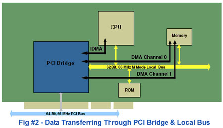 With the PCI BUS master DMA technology, modern data acquisition cards can perform much higher speed I/O than traditional cards. Previously, PCI bus bandwidth is sufficient for 100KS/s data acquisition. However, as A/D technology evolves, 30MS/s or higher sampling rate has become possible, making the PCI bus bandwidth a bottleneck in data transfers. Applying PCI bus master DMA is one of the best methods to break through bandwidth limitations without changing the physical bus interface.