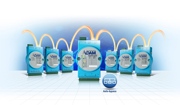 To implement daisy chain networking and save wiring costs the ADAM-6200 has two 10/100 Ethernet ports. In the event of power failure on a device, the, patent applied, auto-bypass protection feature will ensure that the network connection continues in around 2.5 seconds. With its two ports, a network of ADAM-6200s can be joined together by simply connecting them together, making it easy to expand the network quickly and easily.