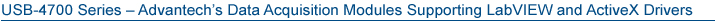 Advantech's USB DAQ modules are famous for user-friendly design and ability to replace traditional serial and parallel devices as they eliminate the need for an external power and allow hot swapping. Through the Advantech USB-4700 DAQ series, users can easily upgrade their computing platforms with cutting edge technologies and realize cost-effective maintenance while allowing the data acquisition devices to operate as usual.